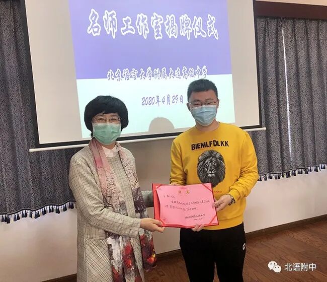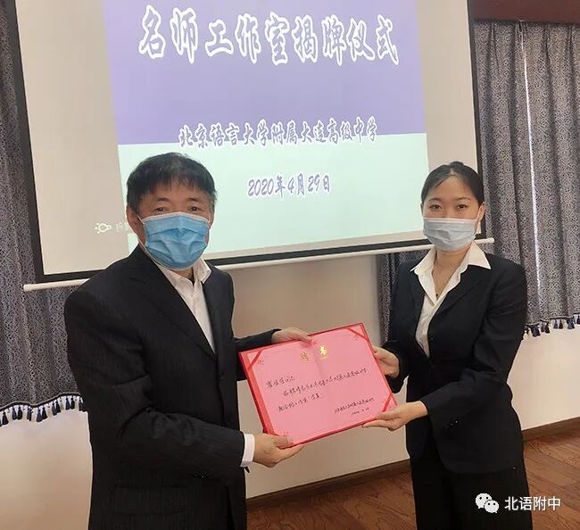 为了更好地发挥名师的传帮带作用,让更多的中青年教师快速成长,学校经过深度思考,决定启动“名师工作室”系列工程,首批先行成立了以鞠金路老师为核心的“鞠金路工作室”和以慕德兰老师为核心“慕德兰工作室”。2020年4月29日上午10:00,由学校党支部书记胡更主持,在大连市教科所专家的见证下,在学校汇贤楼一楼会议室,举行了名师工作室揭牌仪式。